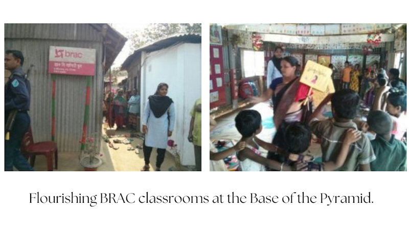 As a teacher, the first thing that caught my eye when we visited a pre-primary school run by BRAC was how carefully the children had arranged their chappals in a circle outside their classroom. This BRAC school, a few hours away from Dhaka, like many others is a simple structure: a single room made with tin walls and roofing and anchored by one main teacher and another assistant teacher that is designed to prepare young children for primary school. BRAC’s non-formal primary schools aim to give a second chance at learning to disadvantaged children. These children are left out of the formal education system owing to extreme poverty, violence, displacement, or discrimination.